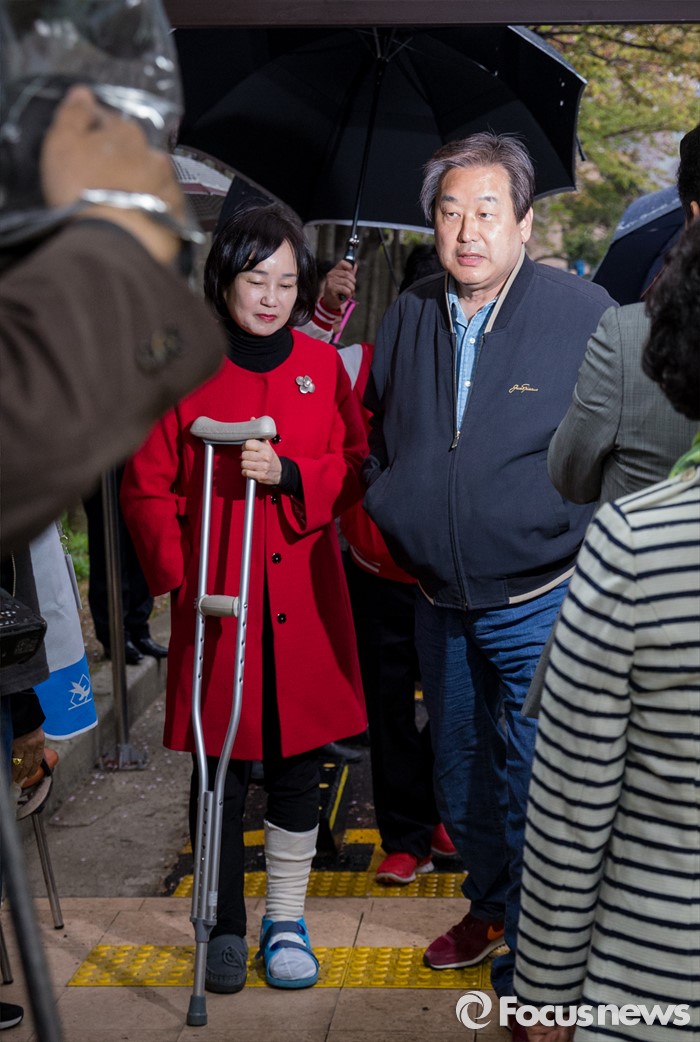 | △ 투표소 향하는 김무성 내외 |