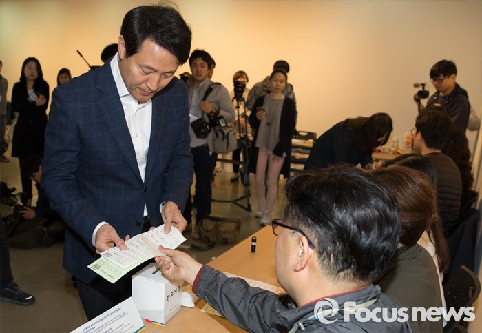| △ 투표용지 받는 오세훈 후보 |
