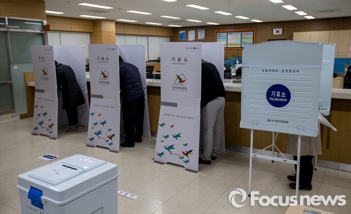 (대구=포커스뉴스) 제20대 국회의원선거날인 13일 오전 대구 수성구 만촌주민센터에 마련된 투표소에서 유권자들이 투표를 하고 있다.