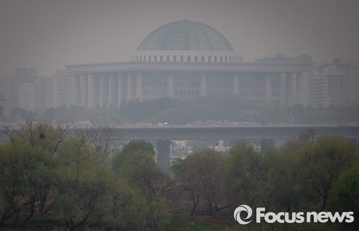 (서울=포커스뉴스) 제 20대 국회의원 선거 투표가 시작 된 13일 오전 서울 마포구 서강대교 북단에서 하얀 안개 사이로 국회가 보이고 있다.