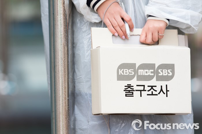 (광주=포커스뉴스) 제20대 국회의원 선거일인 13일 오전 광주 광산구 산월동 봉산초등학교에서 출구조사 방송관계자들이 출구조사를 하고 있다.