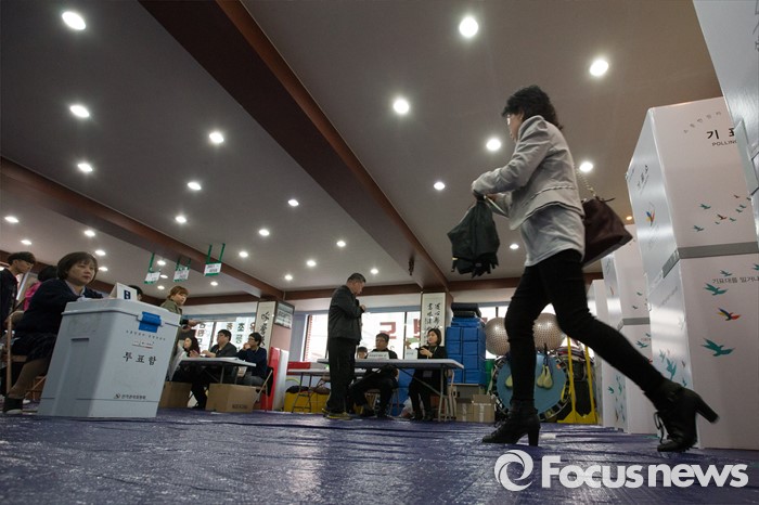 (서울=포커스뉴스) 제20대 국회의원선거일인 13일 오전 서울 강서구 화곡제8동 제5투표소에서 유권자들이 투표를 마친 뒤 기표소를 나서고 있다.