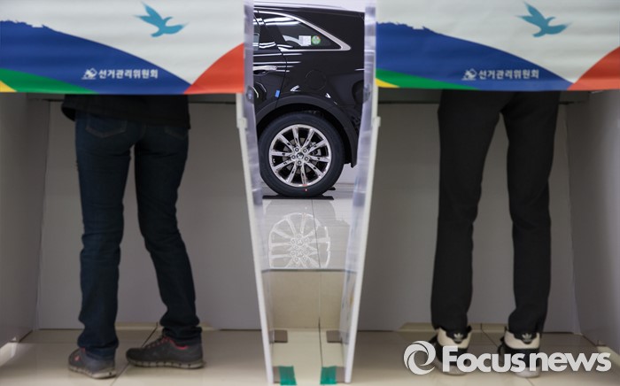 '자동차 전시장에 투표소가'