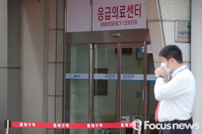 (서울=포커스뉴스) 13일 오후 서울 종로구 강북삼성병원 응급실 앞 출입이 통제되고 있다. 최근 한국에 입국한 아랍에미리트(UAE) 국적의 메르스 의심환자가 강북삼성병원 응급실을 방문해 메르스 의심 진단을 받은 것으로 확인됐다.