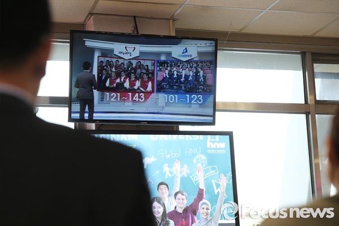 (서울=포커스뉴스) 제20대 국회의원선거일인 13일 오후 서울 서초구 고속터미널에서 시민들이 출구조사 발표 방송을 시청하고 있다.