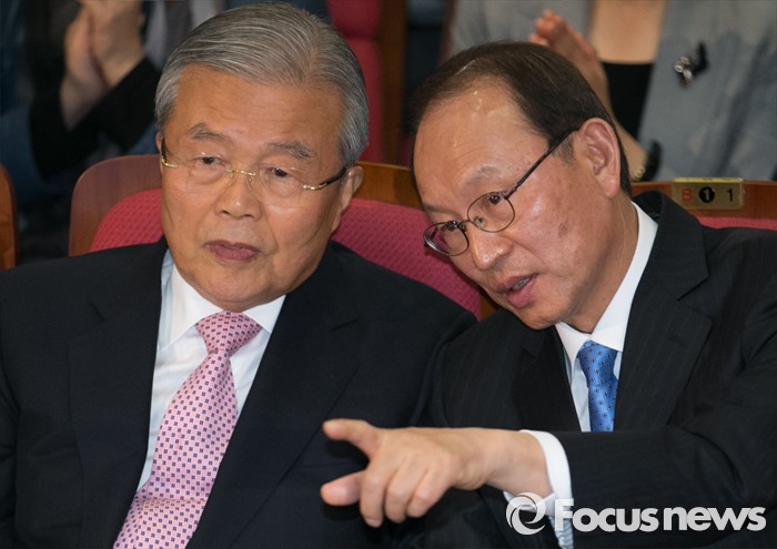(서울=포커스뉴스) 20대 총선 투표일인 13일 오후 서울 여의도 국회 의원회관 대회의실에 마련된 더불어민주당 개표상황실에서 김종인(왼쪽) 비대위 대표 겸 선대위원장과 최운열 국민경제상황실장이 출구조사 및 개표방송을 시청하며 대화하고 있다.