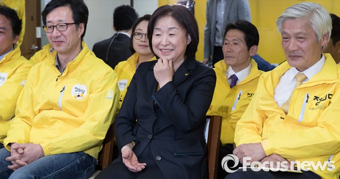 (서울=포커스뉴스) 2016 제20대 국회의원선거날인 13일 오후 서울 영등포구 정의당사에 설치된 개표상황실에서 심상정 정의당 상임대표를 비롯한 당직자들이 방송사들의 출구조사 결과를 지켜보고 있다.