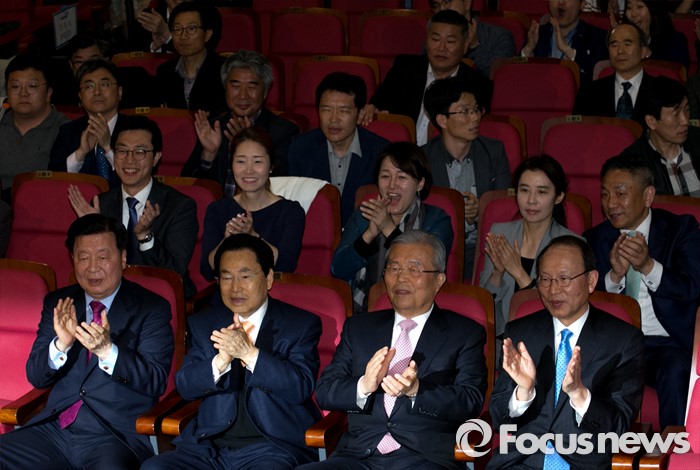 (서울=포커스뉴스) 20대 총선 투표일인 13일 오후 서울 여의도 국회 의원회관 대회의실에 마련된 더불어민주당 개표상황실에서 김종인 비대위 대표 겸 선대위원장 등 선대위원들이 출구조사 및 개표방송을 시청하며 박수치고 있다. 앞줄 왼쪽부터 이근식, 송현섭 부위원장, 김 대표, 최운열 국민경제상황실장.