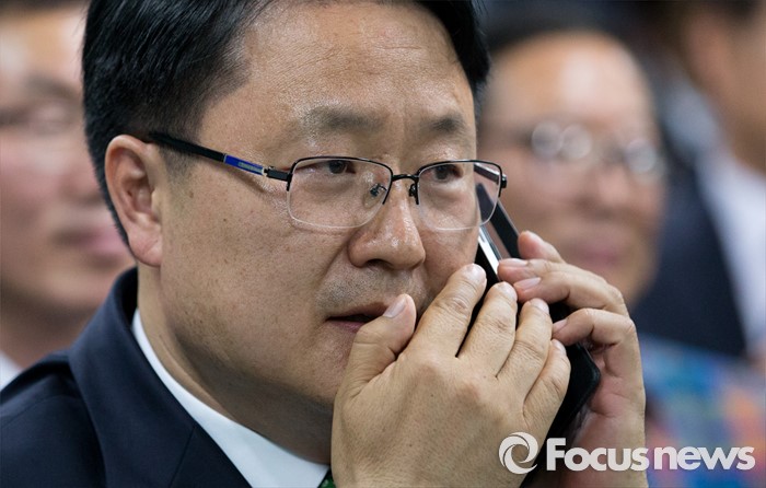 (광주=포커스뉴스) 제20대 국회의원 선거일인 13일 오후 광주 서구 국민의당 광주광역시당에서 송기석 광주 서구갑 후보가 출구조사 결과 시청 후 누군가와 통화를 하고 있다.