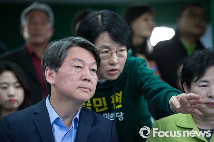 (서울=포커스뉴스) 안철수 국민의당 상임공동대표와 박선숙 비례대표가 13일 오후 서울 마포구 당사 개표상황실에서 개표 방송을 지켜보고 있다.