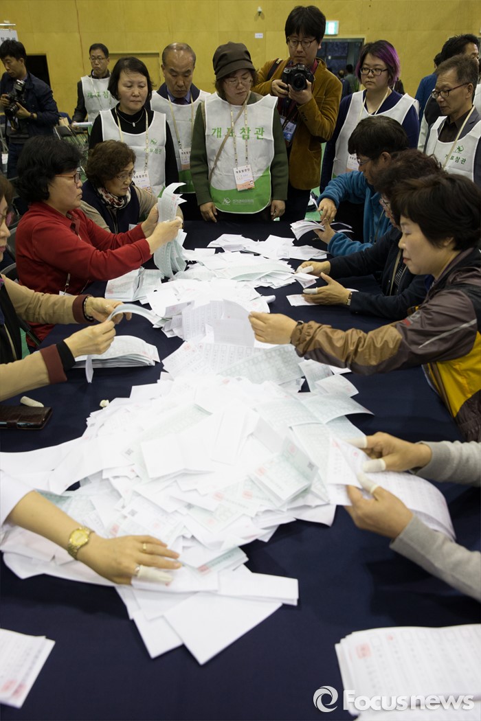 선관위는 이날 밤 10시 전후로 당선자 윤곽이 대부분 드러날 것이라고 전망했다. 후보 간 경합이 치열한 지역은 자정을 전후해 당락이 가려질 것으로 보인다.(서울=포커스뉴스) 제20대 국회의원선거일인 13일 오후 서울 종로구 경기상업고등학교 체육관에 마련된 개표소에서 종로구 선거관리위원회 관계자들이 사전투표함을 개봉하고 있다. 2016.04.13 오장환 기자