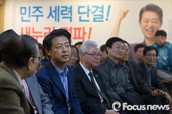 (서울=포커스뉴스) 13일 오후 서울 서대문구 김영호 더불어민주당 서대문구을 후보의 사무실에서 김후보가 지지자들과 함께 개표방송을 보고 있다.