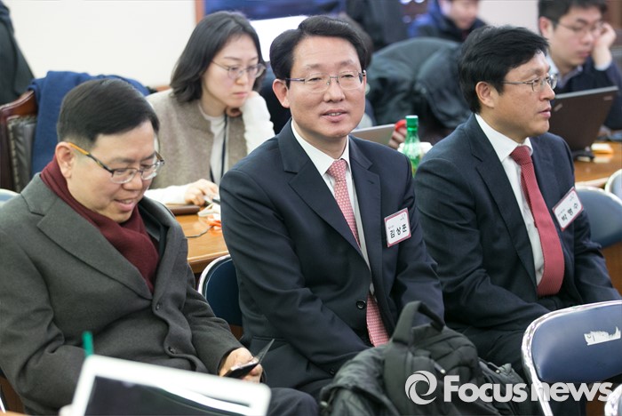 (서울=포커스뉴스) 13일 오후 9시 KBS는 개표율 27.2% 현재 대구 서에서 새누리당 김상훈 후보가 58.1%를 득표해 당선이 확실하다고 밝혔다.(서울=포커스뉴스) 26일 오전 서울 여의도 새누리당사에서 열린 20대 총선 공천 신청자 면접심사에 대구 서구에 신청한 김상훈(가운데) 의원이 면접을 기다리고 있다. 2016.02.26 박동욱 기자
