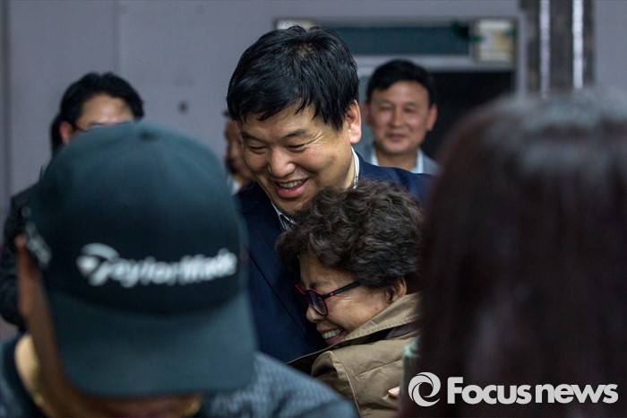 (대구=포커스뉴스) 제20대 국회의원선거 대구 북구을 선거구에서 당선이 확실시 된 무소속 홍의락 후보가 13일 오후 대구 북구 선거사무소에서 지지자들과 함께 기쁰을 만끽 하고 있다.