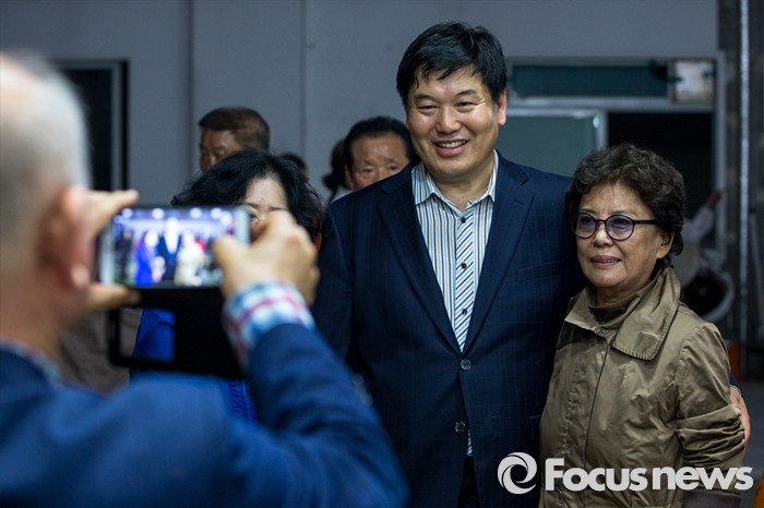 (대구=포커스뉴스) 제20대 국회의원선거 대구 북구을 선거구에서 당선이 확실시 된 무소속 홍의락 후보가 13일 오후 대구 북구 선거사무소에서 지지자들과 사진촬영을 하고 있다.