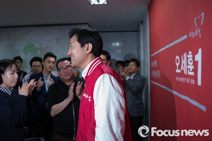 | △ 오세훈 새누리당 종로구 후보, 선거사무소를 떠나며 |