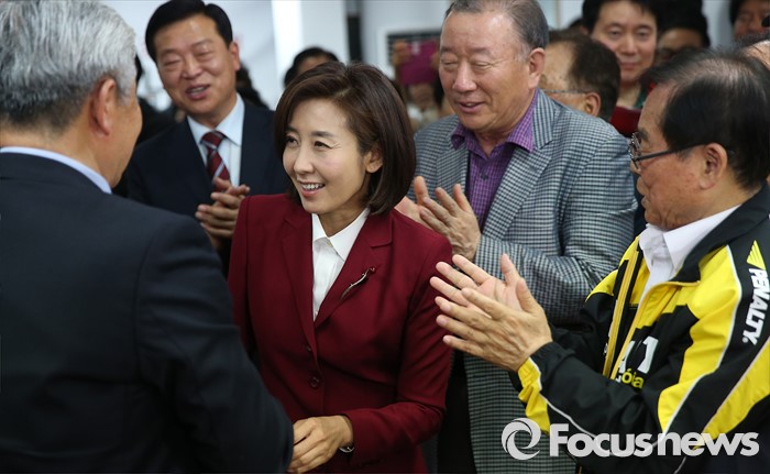 (서울=포커스뉴스) 제20대 국회의원 선거날인 13일 오후 서울 동작구에 위치한 선거사무실에서 나경원 새누리당 동작구을 후보가 지지자들과 악수를 하고 있다.