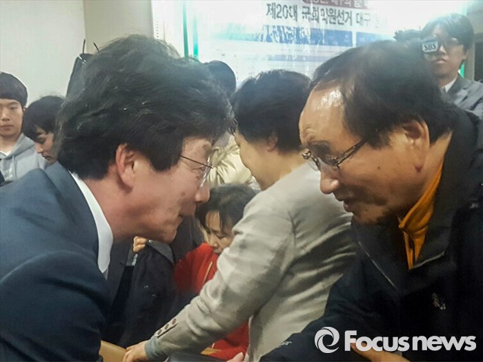 (대구=포커스뉴스) 제20대 국회의원선거 대구 동구을 선거구에서 당선된 무소속 유승민 후보가 13일 오후 대구 동구 선거사무소에서 지지자들과 악수 하고 있다.