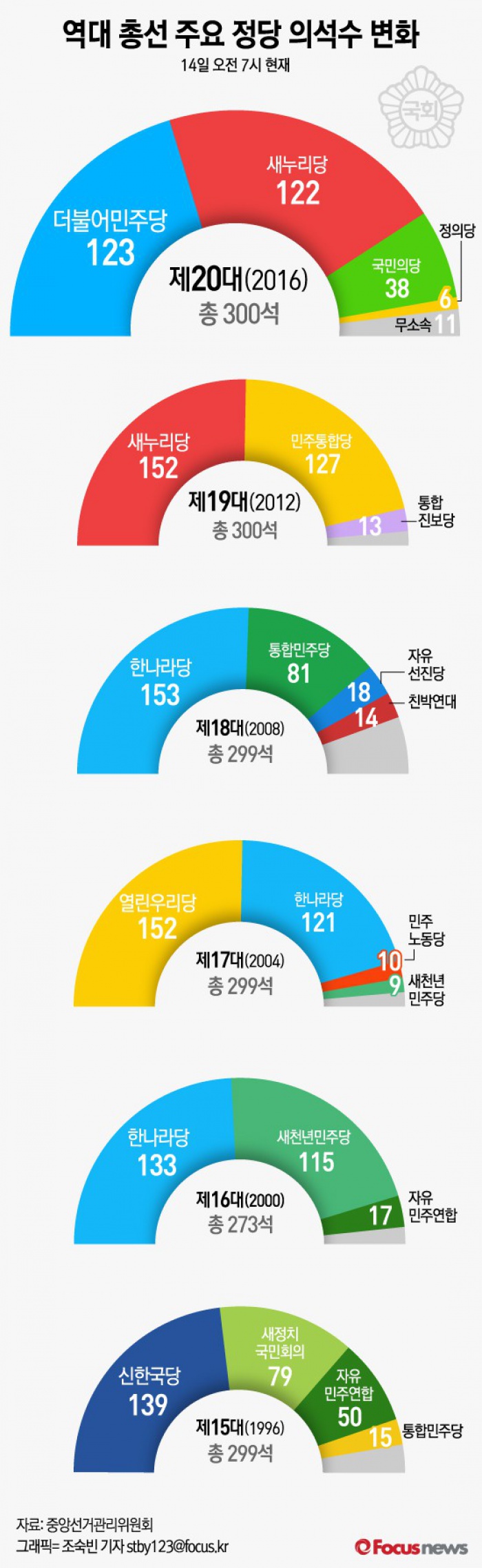 | △ [그래픽] 역대 총선 주요 정당 의석수 변화 |