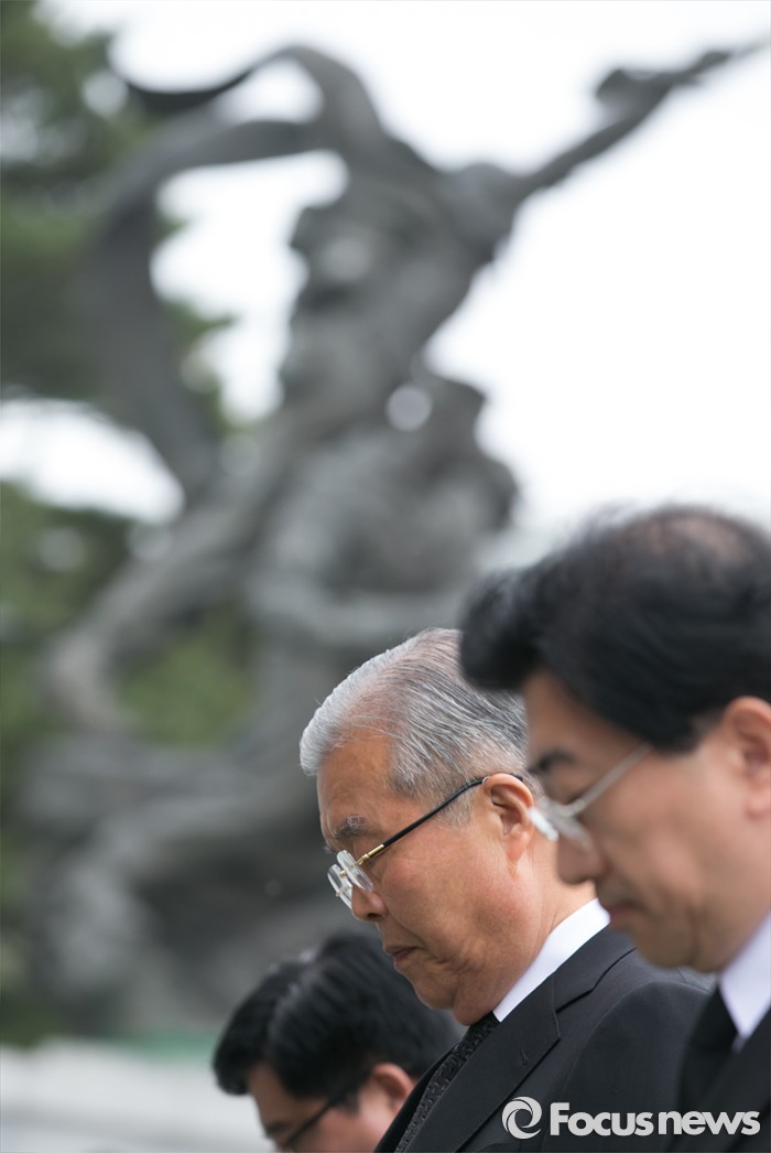 (서울=포커스뉴스) 14일 오전 동작구 국립서울현충원에서 김종인 더불어민주당 비대위 대표와 20대 총선 당선인들이 현충탑 참배를 하고 있다.