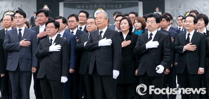 (서울=포커스뉴스) 14일 오전 동작구 국립서울현충원에서 김종인 더불어민주당 비대위 대표와 20대 총선 당선인들이 현충탑 참배를 마친 뒤 나서며 국기에 대한 경례를 하고 있다.