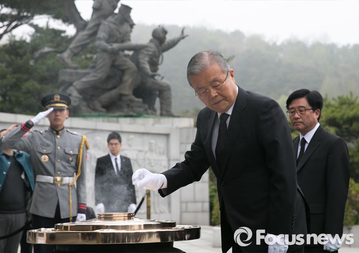 (서울=포커스뉴스) 14일 오전 동작구 국립서울현충원에서 김종인 더불어민주당 비대위 대표와 20대 총선 당선인들이 현충탑 참배를 하고 있다.