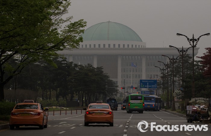 (서울=포커스뉴스) 제 20대 국회의원 선거가 끝난 14일 오전 서울 여의도에서 안개에 싸인 국회가 보이고 있다.