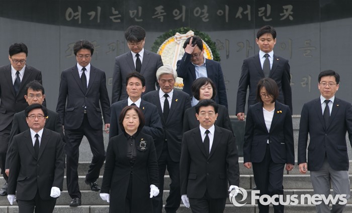 (서울=포커스뉴스) 심상정 정의당 상임대표와 20대 총선 비례대표 당선인들이 14일 오전 동작구 국립서울현충원에서 현충탑 참배를 마친 뒤 이동하고 있다.