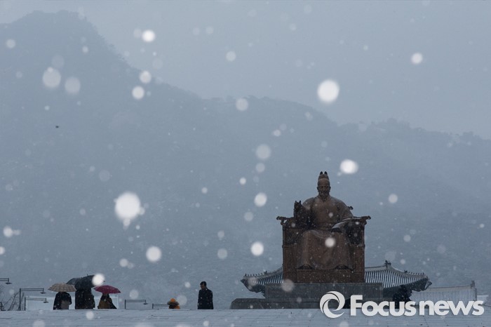 | △ 눈 내리는 광화문 세종대왕동상 |
