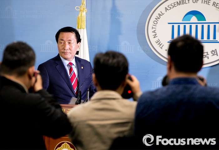 (서울=포커스뉴스) 20대 총선에서 인천 중구·동구·강화군·옹진군 지역구에서 당선된 안상수 무소속 당선인이 14일 오전 서울 여의도 국회 정론관에서 새누리당 복당 선언 기자회견을 위해 입장하고 있다.