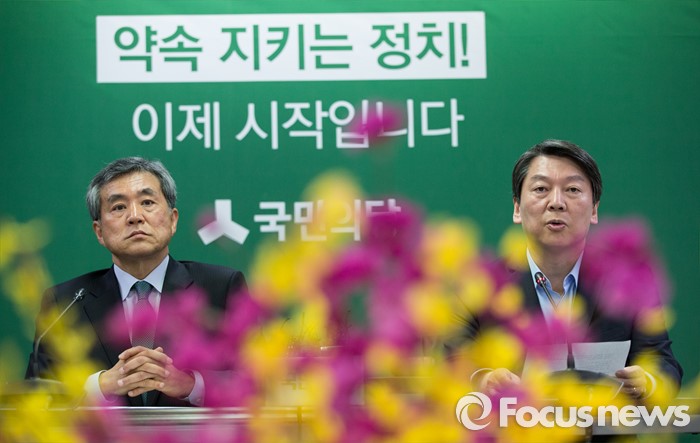(서울=포커스뉴스) 안철수 국민의당 상임공동 대표(오른쪽)와 이상돈 공동선대위원장이 14일 오전 서울 마포구 국민의당 당사에서 선거대책회의를 하고 있다.