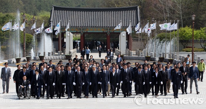 (광주=포커스뉴스) 천정배 국민의당 공동대표를 비롯한 광주 지역 당선자들이14일 오후 광주 북구 국립5.18민주묘지에서 참배를 위해 이동하고 있다.