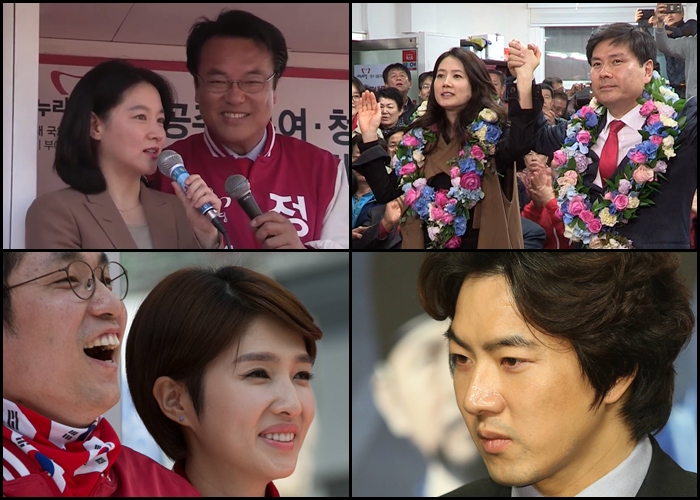 배우 심은하, 이영애, 이하늬는 기쁨의 미소를 지었다. 심은하는 서울 중·성동 을에 출마한 새누리당 지상욱 당선자의 아내다. 선거운동기간 적극적으로 홍보에 나서지는 않았지만 SNS나 지구 당사에서 지지자들을 격려하는 등 ‘조용한 내조’를 펼쳐왔다.