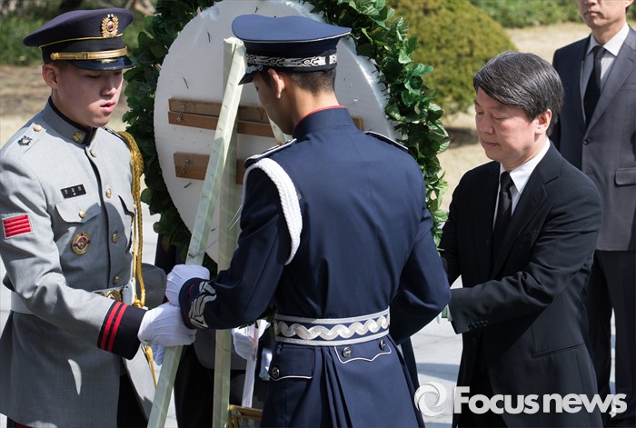 (서울=포커스뉴스) 안철수 국민의당 상임공동대표가 15일 오전 서울 동작구 국립서울현충원에서 현충탑 참배를 하고 있다.