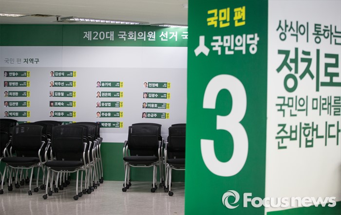 (서울=포커스뉴스) 15일 오후 서울 마포구 당사에서 국민의당 당선자 대회 및 선거대책위원회 해단식이 끝난 후, 빈 의자 뒤 국민의당 선거 상황판에 당선자들의 이름이 보이고 있다.
