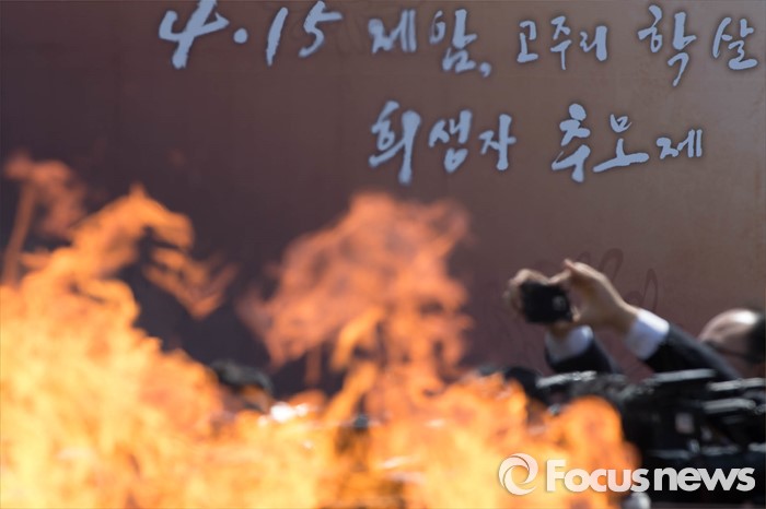 (화성=포커스뉴스) 15일 오전 경기도 화성시 제암리 3.1운동 순국 기념관에서 열린 '4.15 제암, 고주리 학살사건 희생자 추모제'에서 평화의 봉화가 타오르고 있다.
