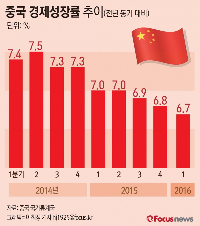 이날 발표된 중국 1분기 경제성장률이 예상치와 부합하면서 경기 둔화 우려에서 벗어났다. 중국 국가통계국은 1분기 국내총생산(GDP)이 전년 동기 대비 6.7% 증가했다고 발표했다.