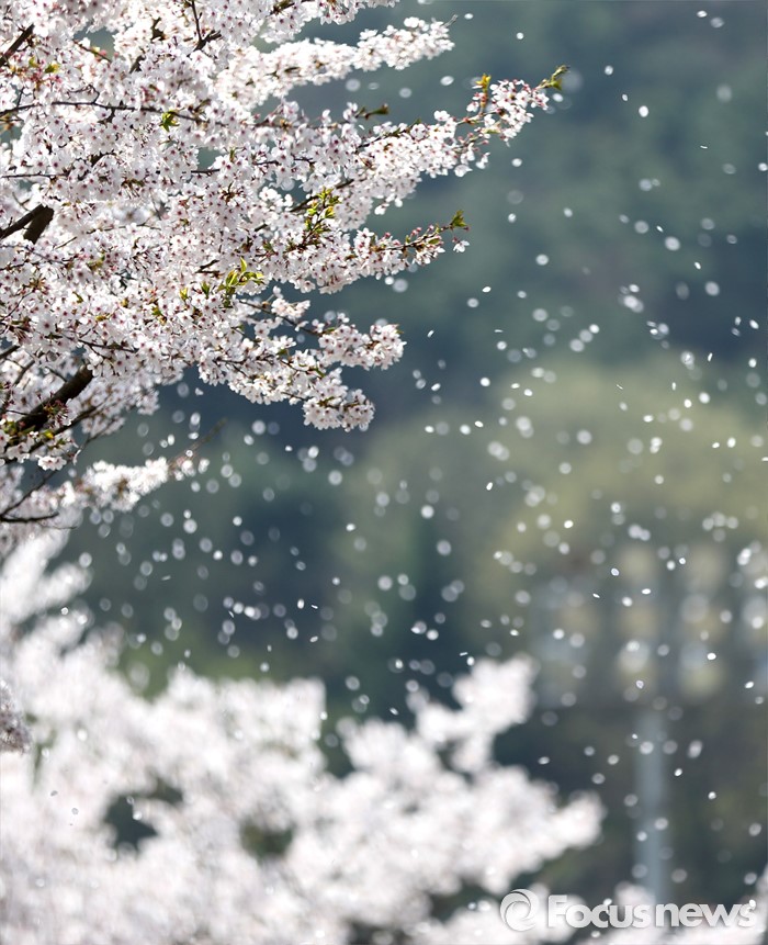 (서울=포커스뉴스) 15일 경기 용인시 명지대학교 자연캠퍼스에서 벚꽃잎이 바람에 흩날리고 있다. <사진제공=명지대학교>