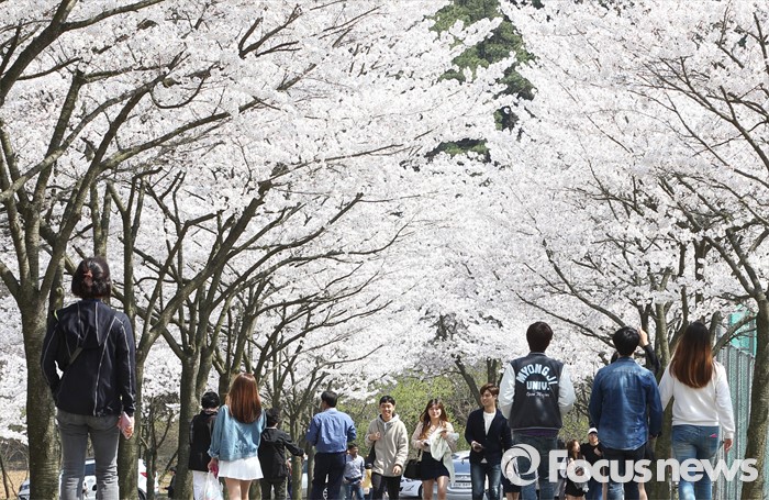 (서울=포커스뉴스) 15일 경기 용인시 명지대학교 자연캠퍼스 내 벚나무 아래에서 학생들이 봄을 즐기고 있다. <사진제공=명지대학교>
