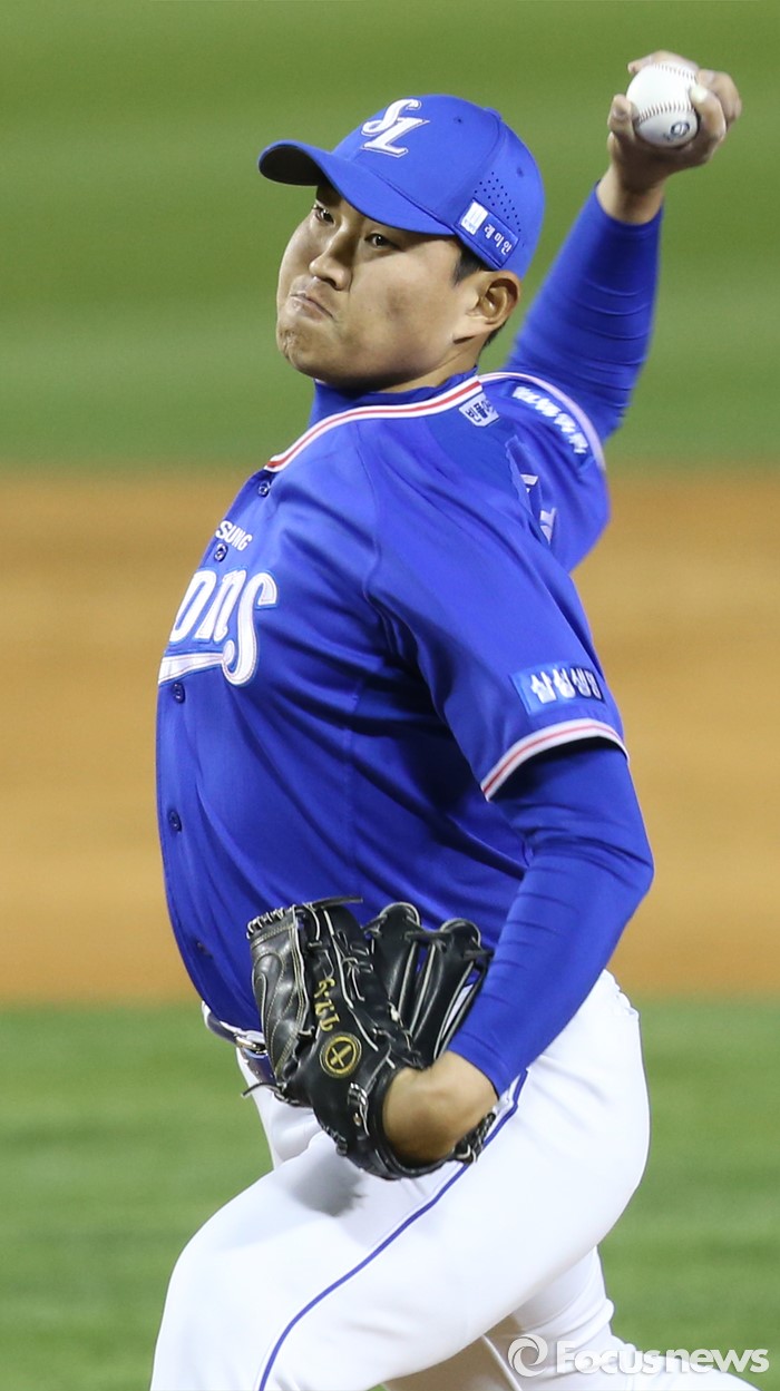 (서울=포커스뉴스) 15일 서울 잠실구장에서 열린 2016 프로야구 삼성-두산 경기 5회말 2사후 등판한 삼성 투수 김동호가 투구하고 있다.