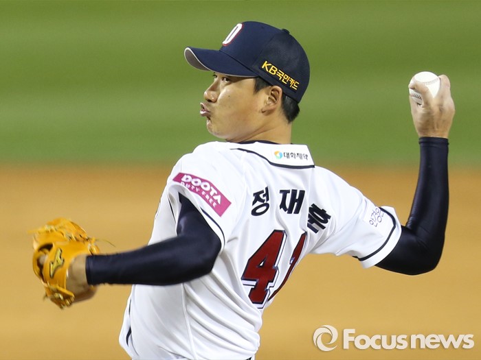 (서울=포커스뉴스) 15일 서울 잠실구장에서 열린 2016 프로야구 삼성-두산 경기 7회초 2사 만루에서 두산 투수 정재훈이마운드에 올라 투구하고 있다.