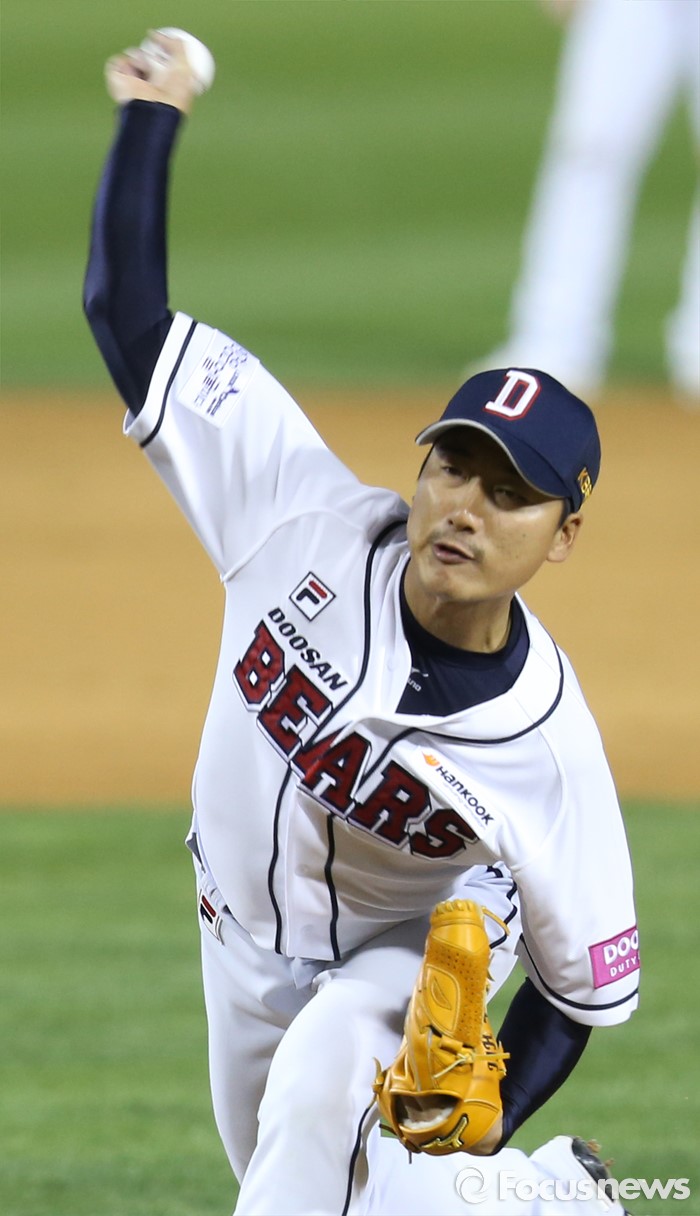 (서울=포커스뉴스) 15일 서울 잠실구장에서 열린 2016 프로야구 삼성-두산 경기 7회초 2사 만루에서 두산 투수 정재훈이마운드에 올라 투구하고 있다.