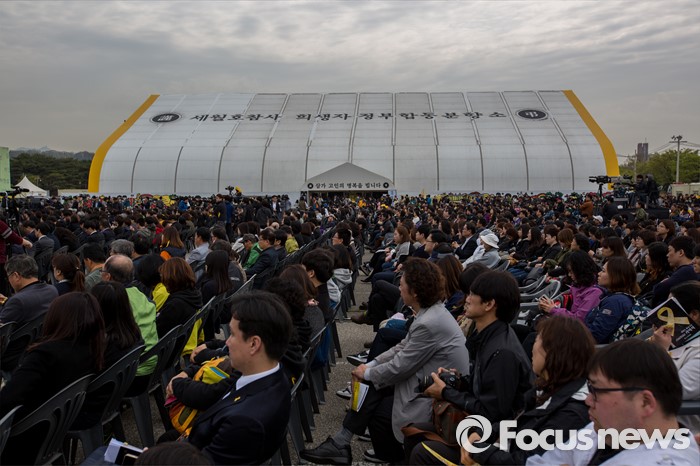 (안산=포커스뉴스) 16일 오전 경기도 안산시 단원구 화랑유원지에 마련된 합동분향소에서 '세월호 참사 2년 기억식'이 열리고 있다.