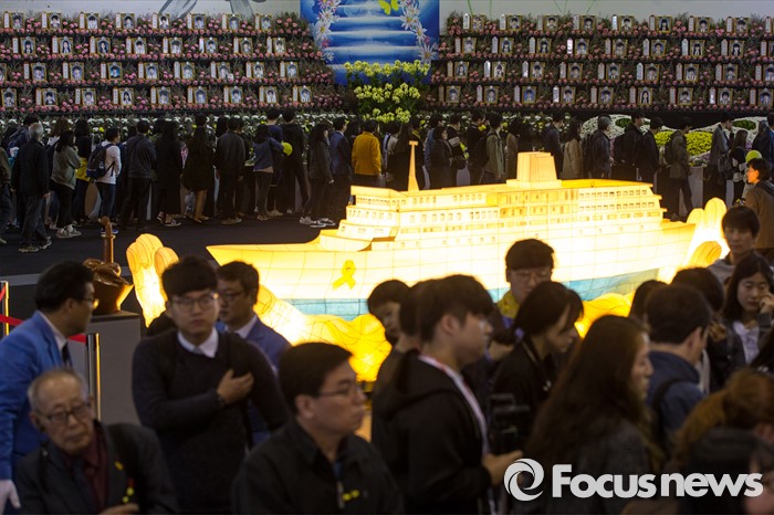(안산=포커스뉴스) 세월호 참사 2주기인 16일 오전 경기도 안산시 단원구 화랑유원지에 마련된 합동분향소에 추모객 발길이 이어지고 있다.