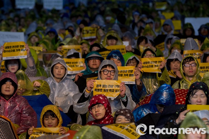 (서울=포커스뉴스) 16일 오후 서울 종로구 광화문 광장에서 열린 '세월호 참사 2주기 전국집중 범국민 추모문화제'에 참가한 유가족 및 시민들이 세월호 진상규명을 촉구 하고 있다.