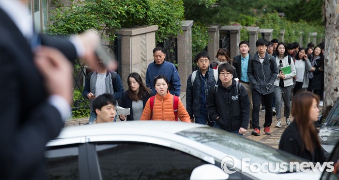 (서울=포커스뉴스) 17일 오전 서울 강남구 단국대학교부속고등학교에서 삼성그룹 공개채용시험 직무적성검사(GSAT)를 치르기 위한 취업준비생들이 고사장으로 향하고 있다.