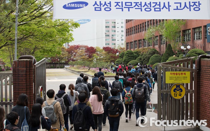 이날 삼성그룹 입사를 위한 두 번째 관문인 '삼성직무적성검사(GSAT)'가 진행됐다. 삼성그룹은 서울을 비롯해 부산·대구·대전·광주 등 5개 지역과 미국(뉴어크, 로스앤젤레스) 등 총 7곳에서 시험을 실시했고, 이곳에서만 41고사장 1200명에 달하는 응시생들이 시험을 봤다.