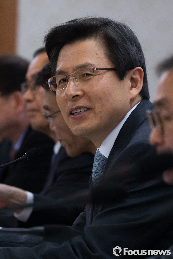 (서울=포커스뉴스) 황교안 국무총리가 18일 오전 서울 종로구 정부서울청사에서 도시재생특별위원회 회의에 참석해 들어서고 있다.