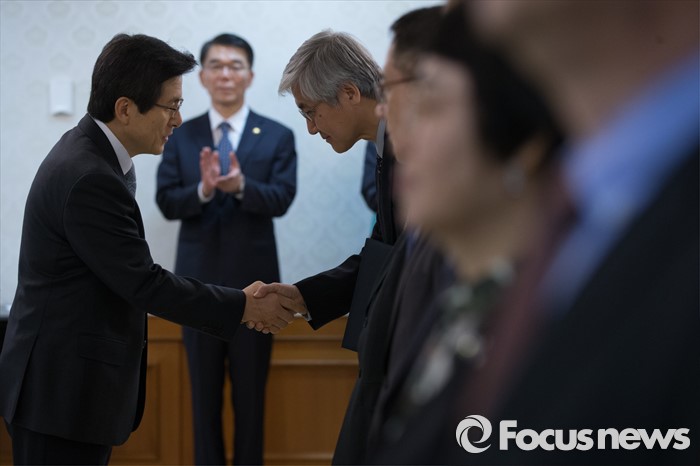 (서울=포커스뉴스) 황교안 국무총리가 18일 오전 서울 종로구 정부서울청사에서 민간위원에게 도시재생특별위 위촉장을 수여하고 있다.