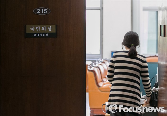 (서울=포커스뉴스) 18일 오전 서울 여의도 국회 본청에 마련된 국민의당 사무실에서 당직자들이 이동하고 있다.